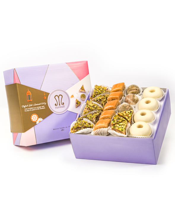 Le cadeau parfait pour la période des fêtes ! Offrez cet assortiment de pâtisseries variées traditionnelles tunisiennes 100% confectionnées à la main et soyez certains de faire sensation ! Ce coffret contient 500G de pâtisseries...