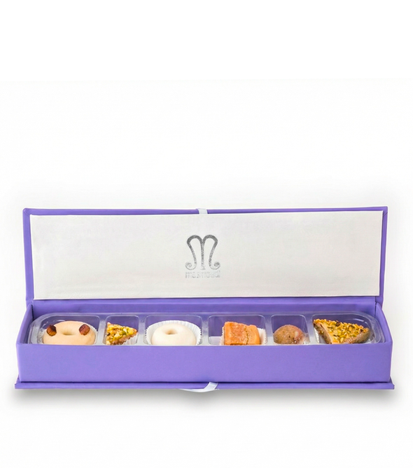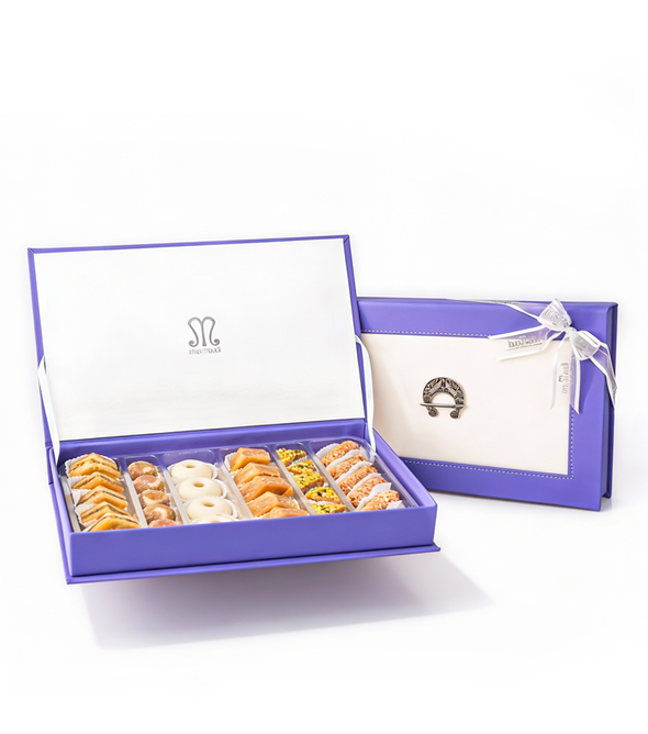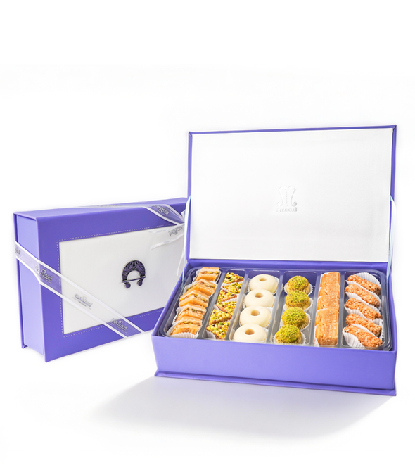 Dans cet élégant coffret, Masmoudi a créé pour vous un délicieux assortiment de pâtisserie orientale aux saveurs variées et délicates.