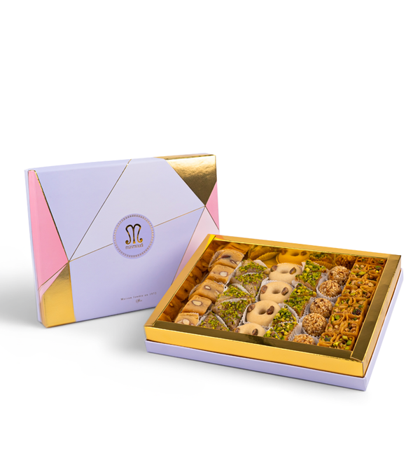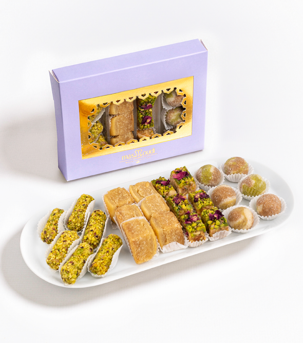 : Ce coffret contient un délicieux assortiment de bourses pistache et amande et noix