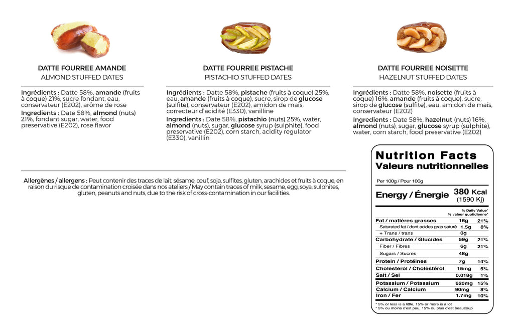 Un ensemble de dattes fourrées à la pistache, à la noisette ou à l'amande, aux délicates notes d'eau de rose pour accompagner le thé ou le café. Ce coffret est le secret pour une après-midi ou une soirée en famille ou entre amis bien réussie.