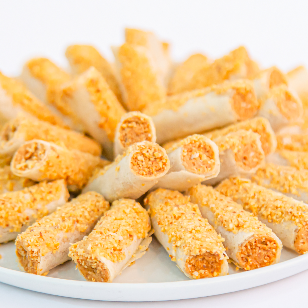 A thin sheet of brick rolled into a cigar, filled with delicious almond paste and garnished with hazelnut powder.